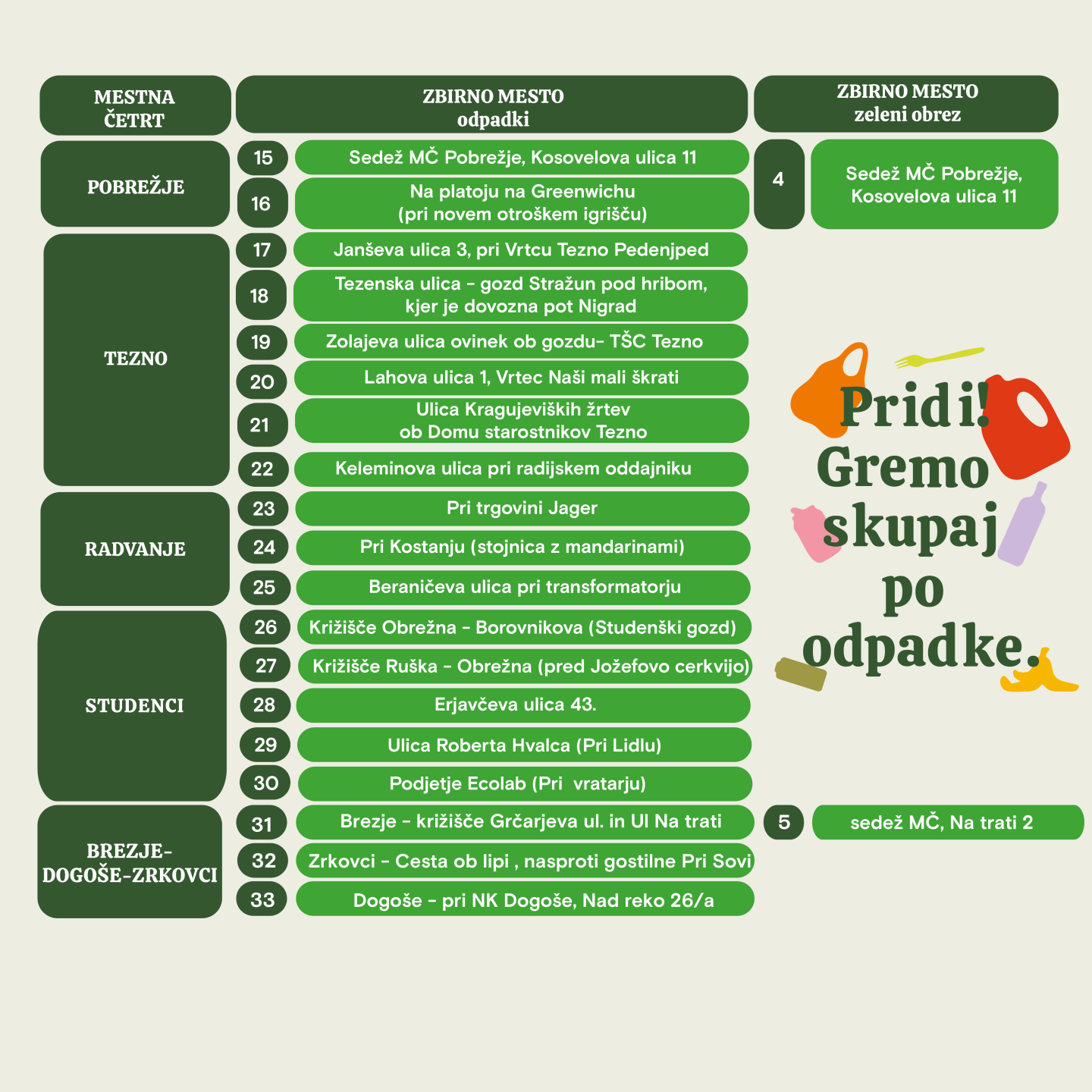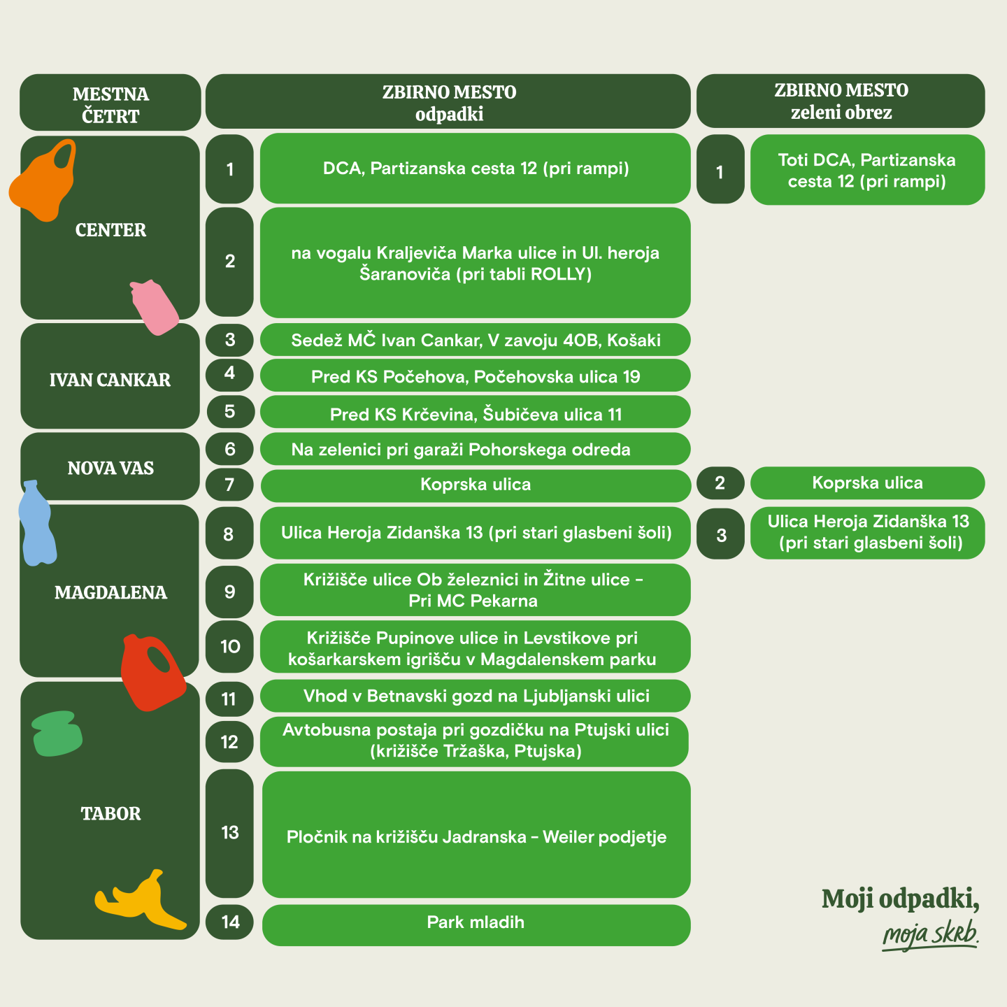 Mestna občina Maribor letos že osmo leto zapored organizira čistilno akcijo »Moji odpadki, moja skrb«, s katero skupaj z občankami in občani soustvarjamo čistejše, urejeno in prijazno okolje.Vrhunec dogajanja bo velika mestna čistilna akcija, ki bo potekala 11. aprila, ko bomo skupaj stopili v akcijo in s skupnimi močmi prispevali k lepšemu mestu. Dobimo se ob 9. uri na zbirnih mestih mestnih četrti in krajevnih skupnosti.