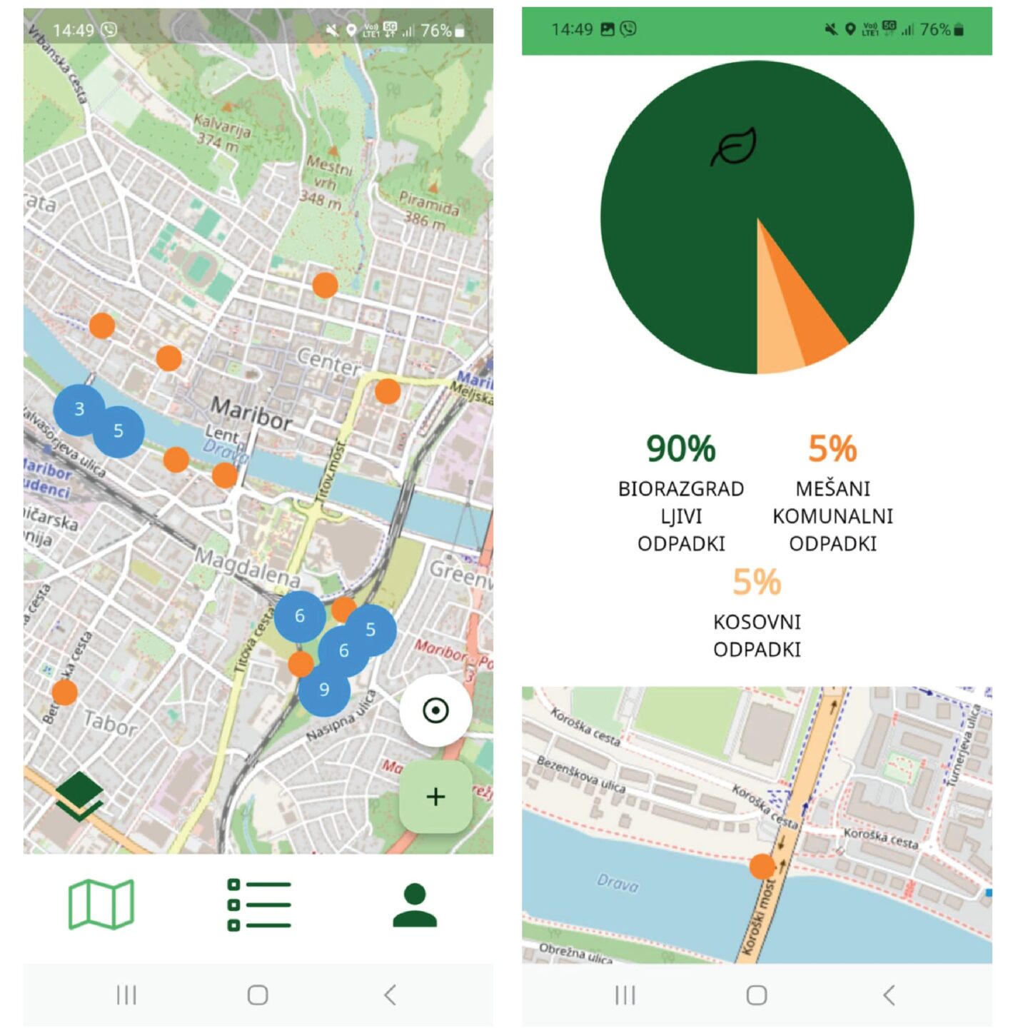 Aplikacija glede na uporabnikovo lokacijo na zemljevidu omogoča prikaz lokacij nelegalnega odlaganja v uporabnikovi bližini.